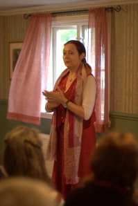 Klockan 7 var det dags för nästa berättare och jag stannade kvar en liten stund och lyssnade. Fascinerande historia om kilskrift och föregångaren till Noaks ark …. Tyvärr var jag för trött för att lyssna färdigt. Gick tillbaka till sköna sängen och sov en go’ timme till. Jo frukosten stod kvar när jag kom upp – mums. Träffade flera personer på frukosten som jag fick en liten pratstund med. Tänk när man är på festival såhär så är det så lätt så lätt att prata med …. nästan vemsomhelst som också besöker festivalen! Och ofta hittar jag någon som känner någon som jag känner och vet ni – igår träffade jag en kvinna som hade jobbat med min mamma. Otroligt och otippat. Men så är det hela tiden här, tycker jag efter alla dessa år. Så många möten.