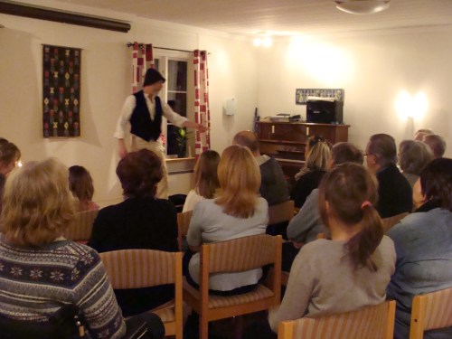 I berättarrörelsen pratar vi om att utveckla berättandet som scenkonst. Om jag ska vara ärlig har jag aldrig riktigt förstått det resonemanget. Visst är berättande konst. Precis som teater, litteratur och bilder kan berättandet ge oss skönhet, ifrågasätta vårt sätt att tolka världen och skaka om oss i vårt människovarande. Det är precis som om vi måste använda ordet berättarkonst för att hävda oss i kampen om utrymmet i massmedia och betona vår självklara rätt att få del av samhällets kulturpengar. Men jag tycker att just det genuina mötet, närheten och medskapandet är berättandets styrka. Som det var i Hagshult denna fredagkväll.