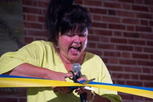 Själva invigningen skedde under halvceremoniella former av Lisa Syrén. De som brukar lyssna radioprogrammet ”Ring så spelar vi” vet vem hon är. Den välkända programledaren klippte det blågula bandet med hjälp av en någon motsträvig sax och avslöjade sedan en del glada nyheter. Hon planerar att göra ett helt radioprogram som bara handlar om Ljungby berättarfestival. Under hela sommaren, varje söndag klockan 10.00 kommer att sändas ett radioprogram som ska heta ”Sverige berättar”. Dess innehåll kommer att bestå av berättelser som bandas här i Ljungby, i dagarna. Några stycken från Sveriges radio kommer att stå utanför Sagomuseet söndagen eftermiddag mellan 12-18 för att samla in dessa sagor. Alla som har lust och vilja att dela med sig en rolig eller gripande historia kan söka sig dit för att få den inspelad.