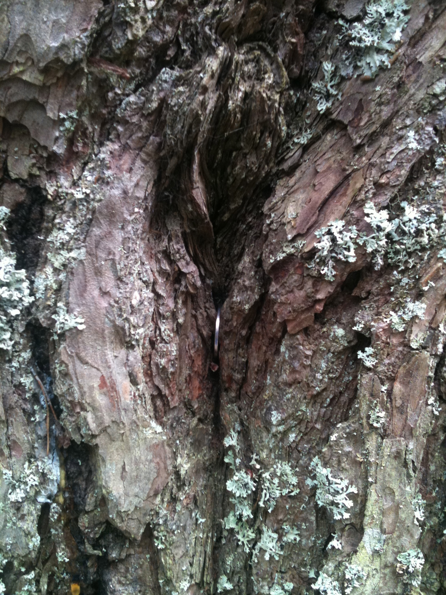 Pengatallen i Vikene. Besökaren stoppade in ett mynt i springorna i barken för att bland annat bli kvitt sjukdomar.