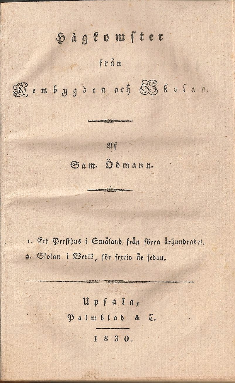 En fin bild av hur berättandet kunde gå till på 1700-talet ger Samuel Ödman i den klassiska skildringen Hågkomster från hembygden och skolan, som utkom 1830, året efter författarens död. Samuel Ödman var professor i teologi i Uppsala. I boken skildrar han ett gammaldags prästhus i Vislanda socken i Småland. Samuel Ödman föddes 1750 och växte upp hos morfadern, prosten Samuel Wiesel, som förde det gamla levnadssättet i prästgården från 1600-talet vidare. Detaljrikt beskriver Samuel Ödman husets tre stora folkfester: julen, ostmötet och slutligen humlekvällarna.