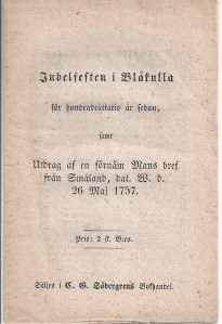 I mitten av 1800-talet kom det ut en liten skrift med titeln Jubelfesten i Blåkulla. Det är inte som man först kan tro en skildring av folktron kring häxsabbaten. I själva verket är det en nykterhetsskrift som använder sig av den traditionella folktron för att propagera för nykterhet. Och det gör den genom att måla upp en skräckskildring av vad som väntar drinkarna.