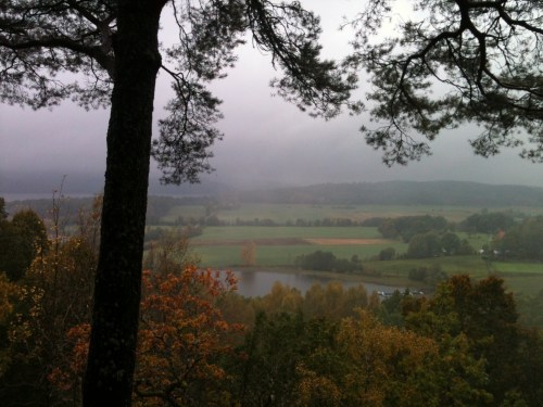 Vi gick upp på Korpebobergets torp och skådade ut över Åsunden och stora delar av Marbäcks socken. Det var en disig förmiddag, men vidunderligt vackert. Vi njöt av tystnaden och det storslagna landskapet.