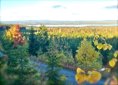 Stigen bär rakt ut i vilda skogen. Det är mörkt, för mörkt för att få vettiga bilder. Men flera fina skulpturer i trä står här, målningar och en halvt nedrasad stuga, där en riktig döing sägs hålla till. På flera ställen skyltar som berättar om traktens folktro. På en av skyltarna står att läsa om Vittran. Visst är det lite annat häruppe i norr….