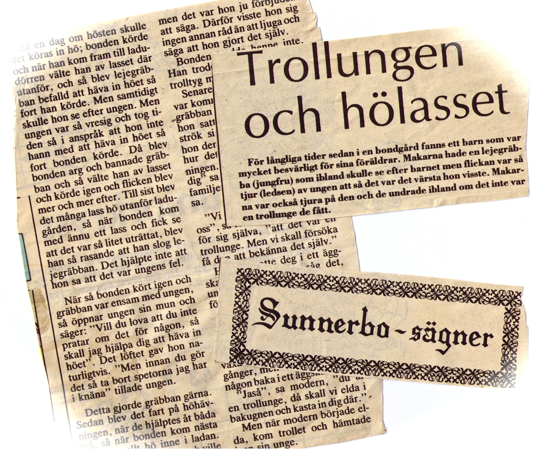 Jag fick ett bekymmer i somras. Hade fått jobbet att berätta sägner på ett slåttergille. Trevligt, men jag saknade historier. Satte igång att tokleta. Roliga berättelser om slåttern, eller hösten som vi säger än idag här i de gamla gränsbygderna, var finns dom? Tre berättelser hade jag fått ihop, men jag behövde en fjärde. Efter mycket sökande på nätet och i böcker och alla möjliga och omöjliga papperssamlingar, råkade min hand en dag snudda vid en bunt gulnade tidningsurklipp längst ner i en byrålåda. Bläddrade flyögt igenom packen, alltmer missmodig – här finns förstås inget. Tills min blick plötsligt föll på rubriken ”Trollungen och hölasset”.