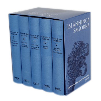 Det är isländska Saga forlag som står bakom utgåvan i fem band, fem volymer i vackra klotband i en kassett. Jag har precis fått hem böckerna från Island. Jag ångrar inte inköpet.