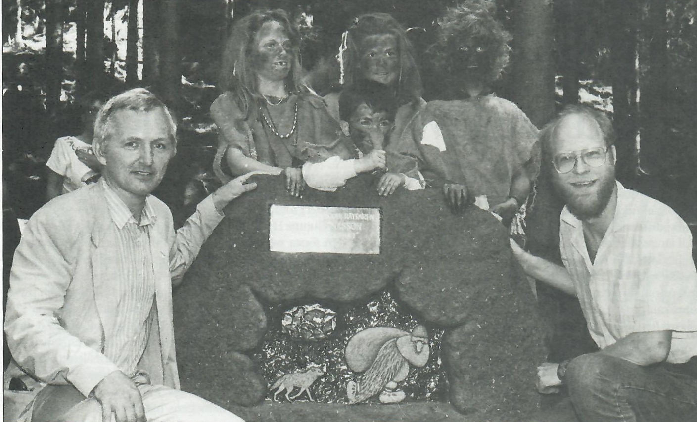 Bengt af Klintberg och artikelförfattaren vid invigningen av minnesstenen över Mickel i Långhult juni 1990