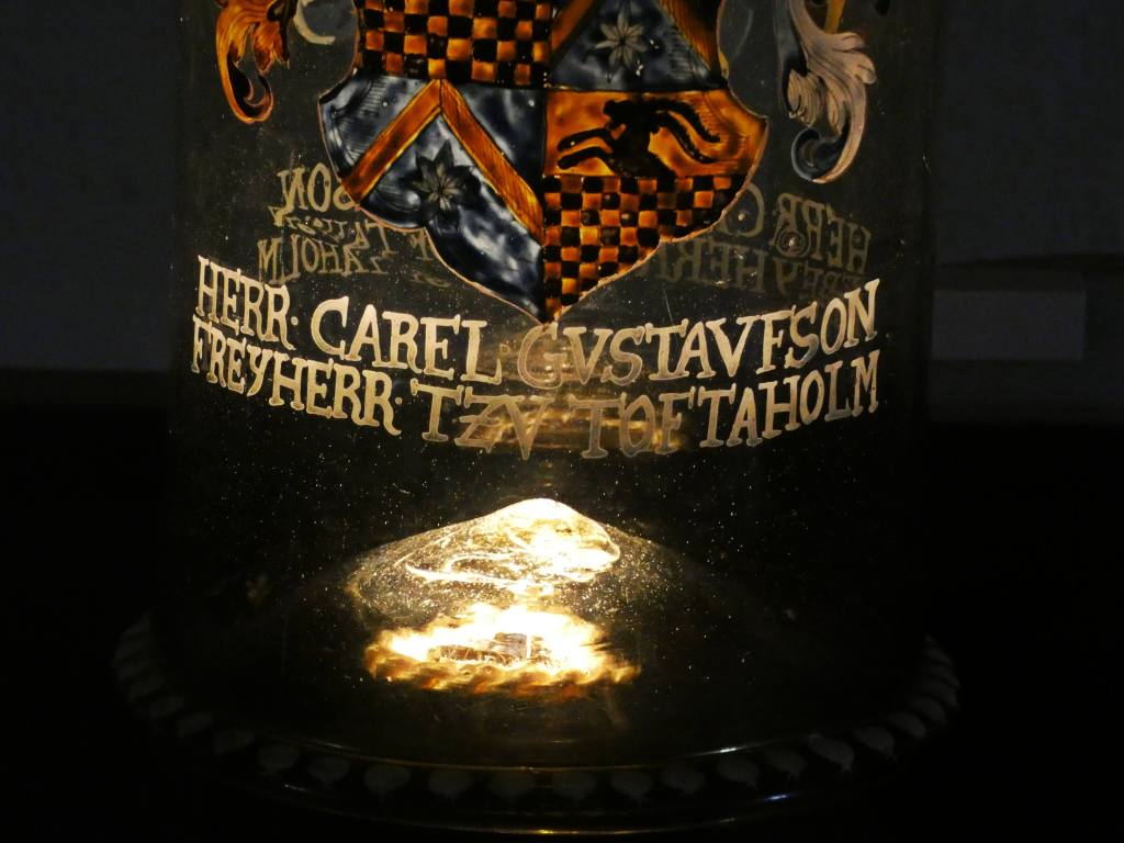Titta vi närmare på humpen så ser vi inskriptionen HERR CAREL GUSTAVFSON FREYHERR TZV TOFTAHOLM.
