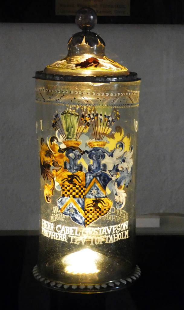 Humpens som inköptes av ägaren till Toftaholm Carl Gustavfson Stenbock levde mellan åren 1537 till 1609 och han upplevde mycket under sitt liv. Han började som hovjunkare hos Johan III och var med i Ryska kriget 1580. Han blev befälhavare på Kexholms fästning som svenskarna under Pontus de la Gardie hade intagit samma år. Under kung Sigismund blev han Ståthållare för Kalmar slott och län samt Öland. Han var även herre till Toftaholm och Vik. Sämre gick det för honom när hertig Karl sedermera Karl IX blev kung. Då Carl Gustavfson Stenbock varit i tjänst för den tidigare kungen Sigismund, ansågs han vara en fiende till den nya kungen Karl IX och sattes i förvar på Gripsholms slott. Vid Linköpings blodbad år 1600 klarade han sig nätt och jämnt från att bli avrättad. Carl Gustavfson Stenbock slutade sina dagar som friherre på Kungslena i Västra Götaland år 1609. Sex år efter Carls död, drunknade hans som Abraham Stenbock i Toftaholm 1616. För oss här i Ljungby kommun är det den unika humpen från Toftaholm som Carl Gustavfson Stenbock blir ihågkommen för, tillsammans med att hans syster Katarina Stenbock som blev Sveriges landsfaders tredje drottning.