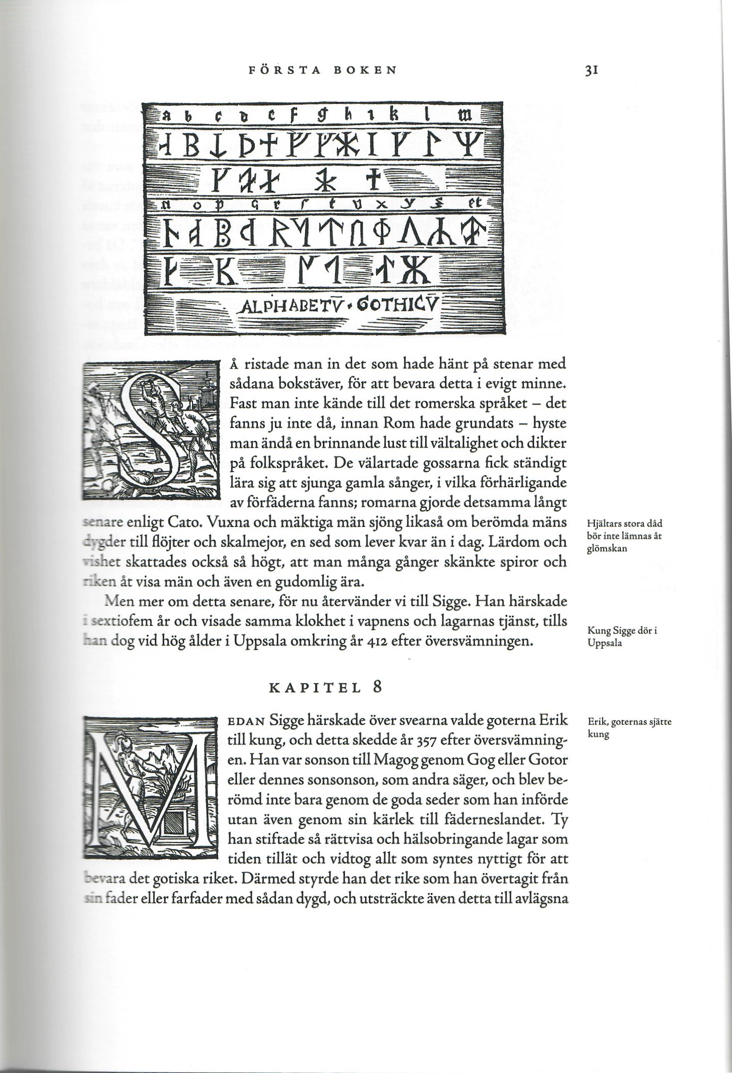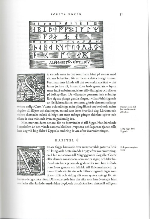 Jag skaffade den svenska utgåvan från 1620 och började läsa och fick en känsla för hur den nationalistiska och götiska historieskrivningen gavs djupa rottrådar och senare kunde användas i olika syften. I dag finns ett nytt intresse för en nationell homogen kultur och då är det onekligen intressant att en nationell historieskrivning paradoxalt nog börjar med en invandrad befolkningsgrupp.