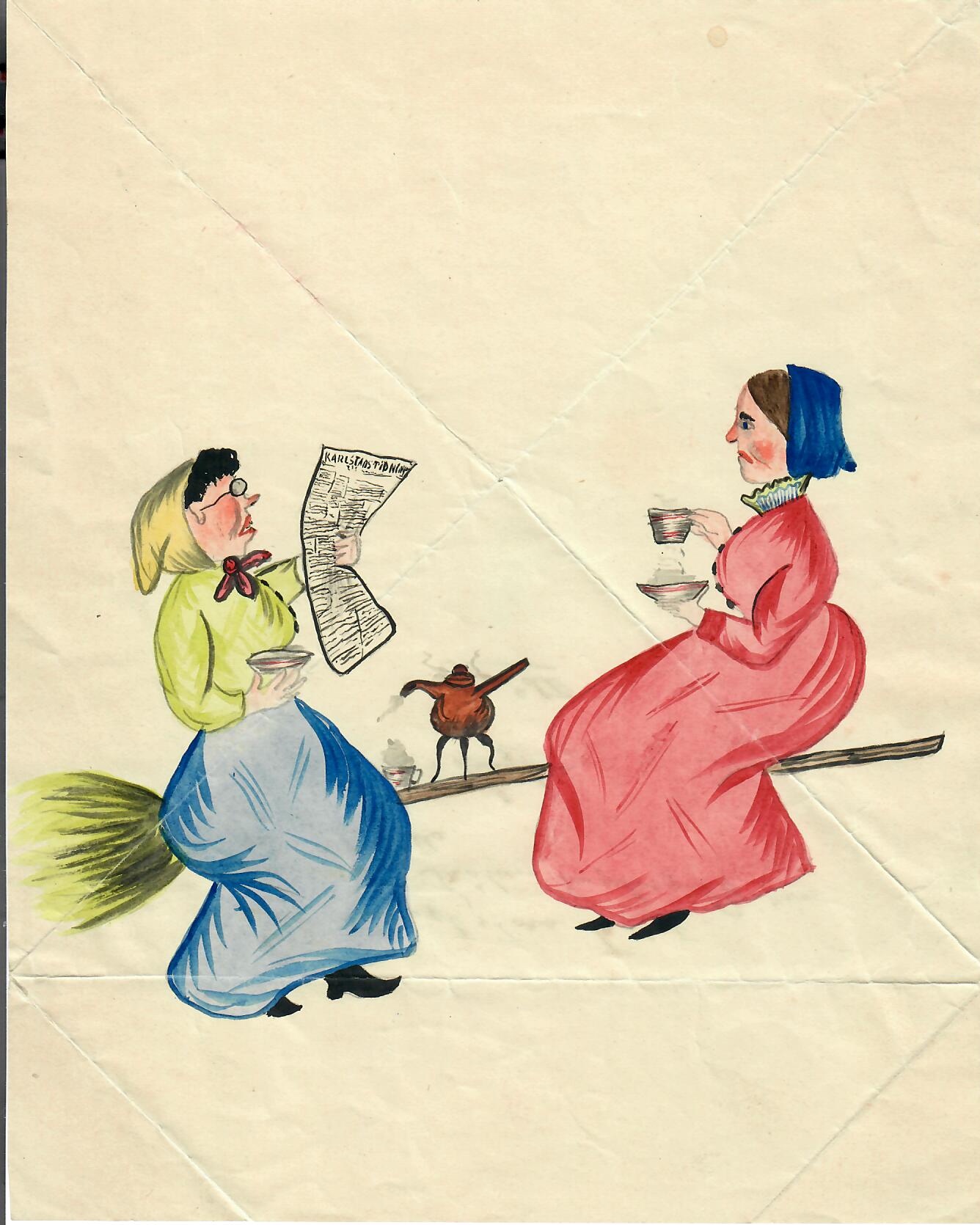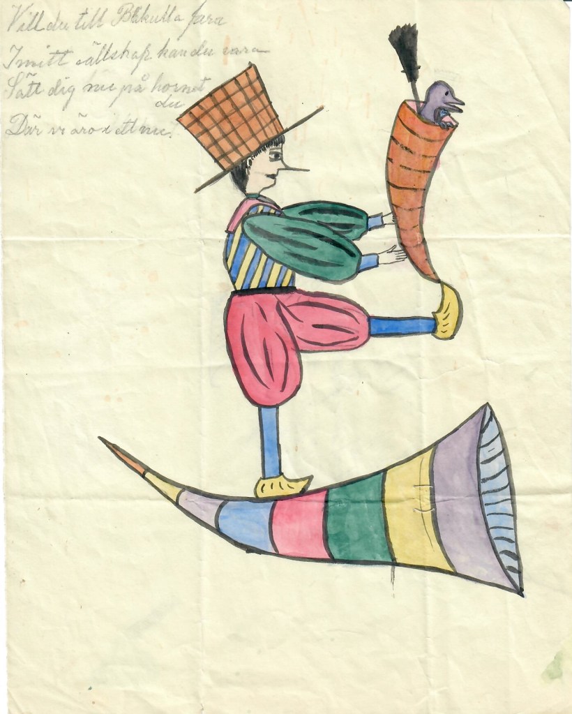 Vi har tidigare skrivit på bloggen om seden att rita påskbrev och kasta in dem i husen, för att sedan snabbt försvinna. Avsändarens syfte var att skoja eller driva med adressaten, men brevet kunde också utgöra en liten kärleksförklaring. Om du söker på påskbrev i bloggens sökruta, hittar du mer fakta om traditionen och bilder på många påskbrev.