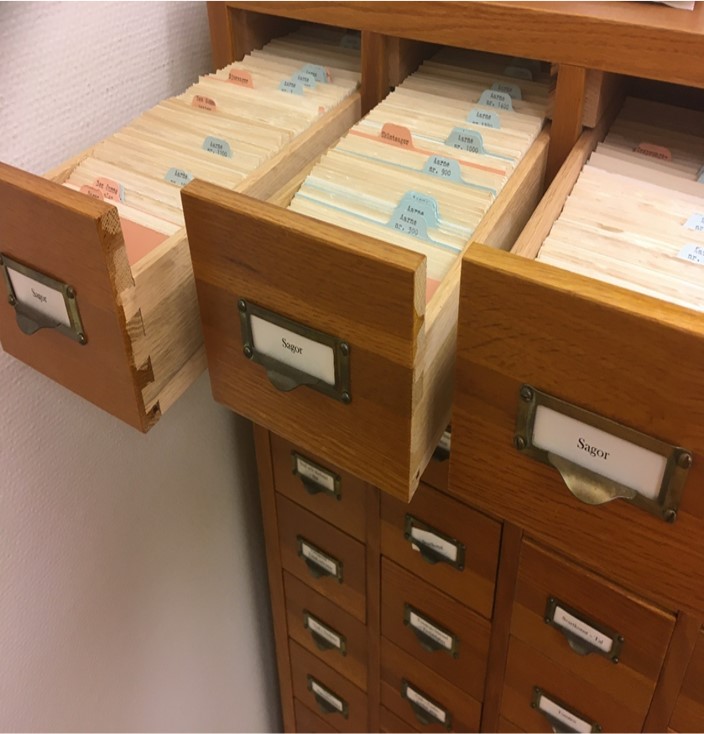 Hösten 2018, efter 25 år i Göteborg, blev familjen hemvändande Värnamobor. För ganska exakt ett år sedan fick mitt tågpendlande och övernattningar på diverse bäddsoffor ett abrupt slut, ersattes av hemmakontoret och i september bytte jag titeln forskningsarkivarie mot berättarantikvarie. Jag saknar mitt dammiga arkiv och önskar såklart att samlingarna fanns ett knapptryck bort. Ändå känner jag mig närmare materialet nu. På Sagomuseet i Ljungby och i Sagobygdens sägenskåp sluts cirkeln. Det muntliga berättandet – de vanliga människornas sagor och sägner som berättades ute i de små stugorna, som fascinerade och räddades undan tidens tand, blev till arkivsamlingar – väcks återigen till liv här.
