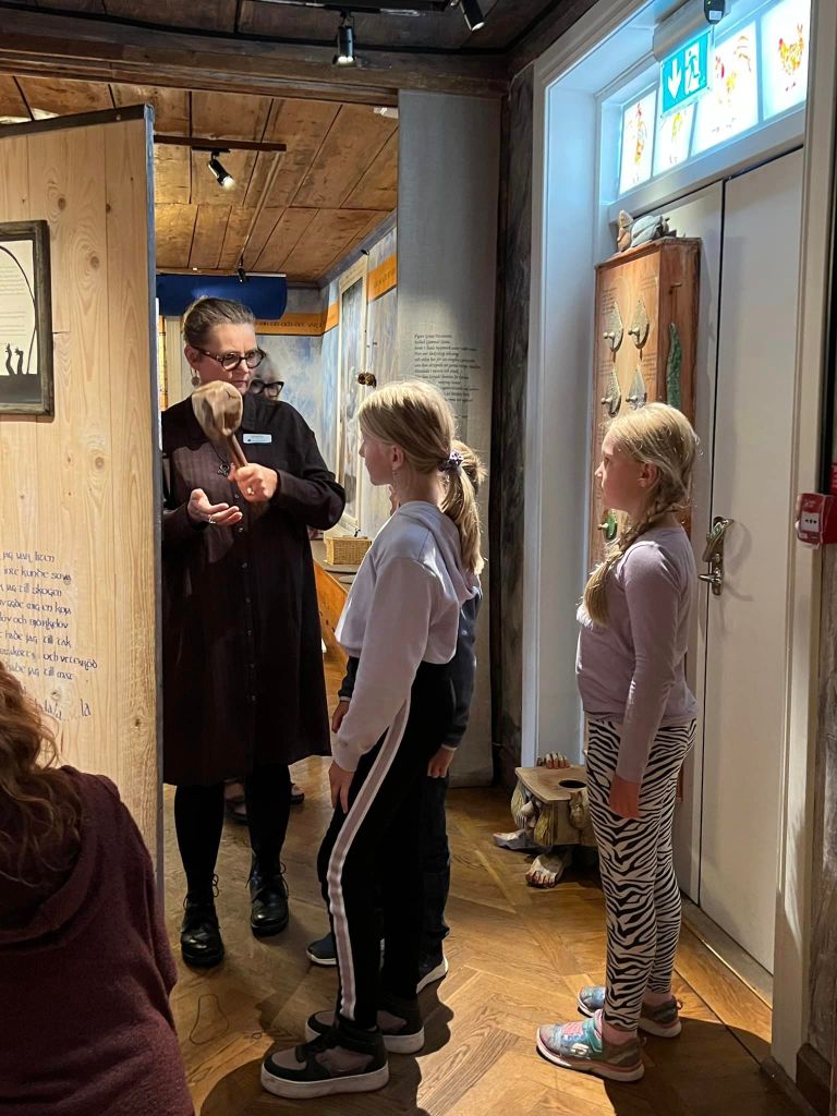 En kvinna var där med sina barn och barnbarn. De hade ett sagoprojekt tillsammans där hon fick plats, person och problem av barnbarnen och sedan hittade hon på en saga åt dem. Den här dagen hade de jubileum och barnen kröp in i lindormens mage för att hitta ingredienserna till hennes 100:e saga. Det är så roligt att veta att det berättas nya sagor runtomkring oss. Och de kunde ju inte valt ett bättre ställe för att hitta på jubileumssagan!