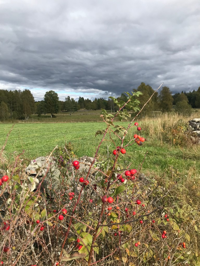 När vi sett oss omkring i Banke; letat rätt på en gammal jordkällare; en murken båt vid sjökanten; en stensatt vattenränna, lämnar vid Elias värld och möter både traktor och ridhästar på vägen tillbaka.