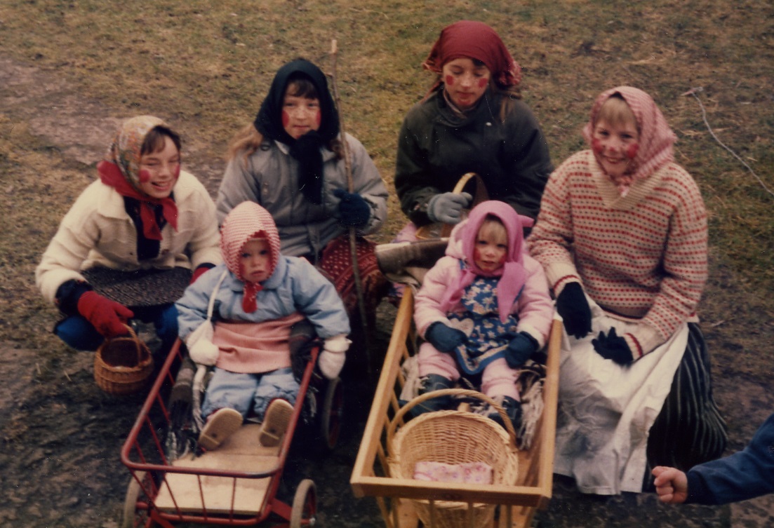 När jag var barn klädde vi ut oss och drog runt i byn med små korgar med egengjorda kort som delades ut i utbyte mot godis och pengar. Jag tror dessutom att vi aldrig tjänat så mycket som det här året då vi hade med oss ett par minipåskkäringar.