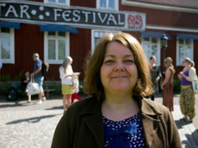 My first visit was in 1998 with Ben Haggarty and Hugh Lupton as The Company of Storytellers. I had never been to Sweden before and late one evening we performed our show ‘The Three Snake Leaves’. It lasts two hours and we were in a dark theatre without windows. It was after 11pm when we finally left this building, and I was astounded to discover it was still light outside! Welcome to Sweden! The visit was magical. We went to a story party beside a lake, listened to legends told by Per in the forest, danced to whirling Swedish folk music, and listened to storytellers who became important people in our lives, among them Ulf Ärnström and Mats Rehnman. We ate cakes from the bakery, and someone took our picture in front of the mural that Mats had recently just painted on the bakery wall!