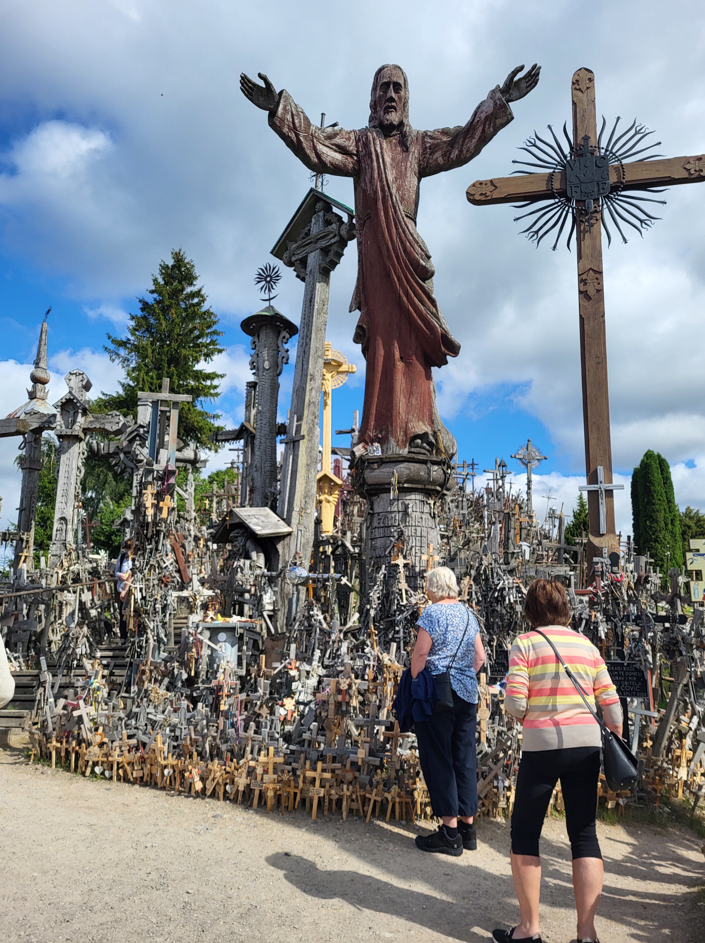 Inte långt från Siauliai ligger Korskullen, där vi gjorde resans första egentliga stopp. På denna märkliga plats togs vi tillbaka till förkristen tid eftersom detta varit en kultplats sedan urminnes tider. Ingen vet när det första korset sattes dit. Men säkert är att på 1800-talet sattes kors där till minne av stupade i uppror mot ryska kejsardömet. Efter Litauens införlivande i Sovjetunionen förstördes platsen flera gånger men nya kors sattes upp och platsen blev så småningom fredad. Nya kors tillkommer hela tiden och vid början av vägen som leder dit, finns möjlighet att köpa kors, änglar och annat för att sätta dit till minne av sina eventuella döda. Det var en något bisarr, men också hisnande upplevelse att vandra mellan dessa anhopningar av kors, huller om buller, lutande, upprättstående, liggande, staplade, mindre kors fästa vid större. Tätt, tätt på två kullar bredvid varandra på en yta av sammanlagt 5 000 kvadratmeter.