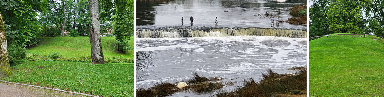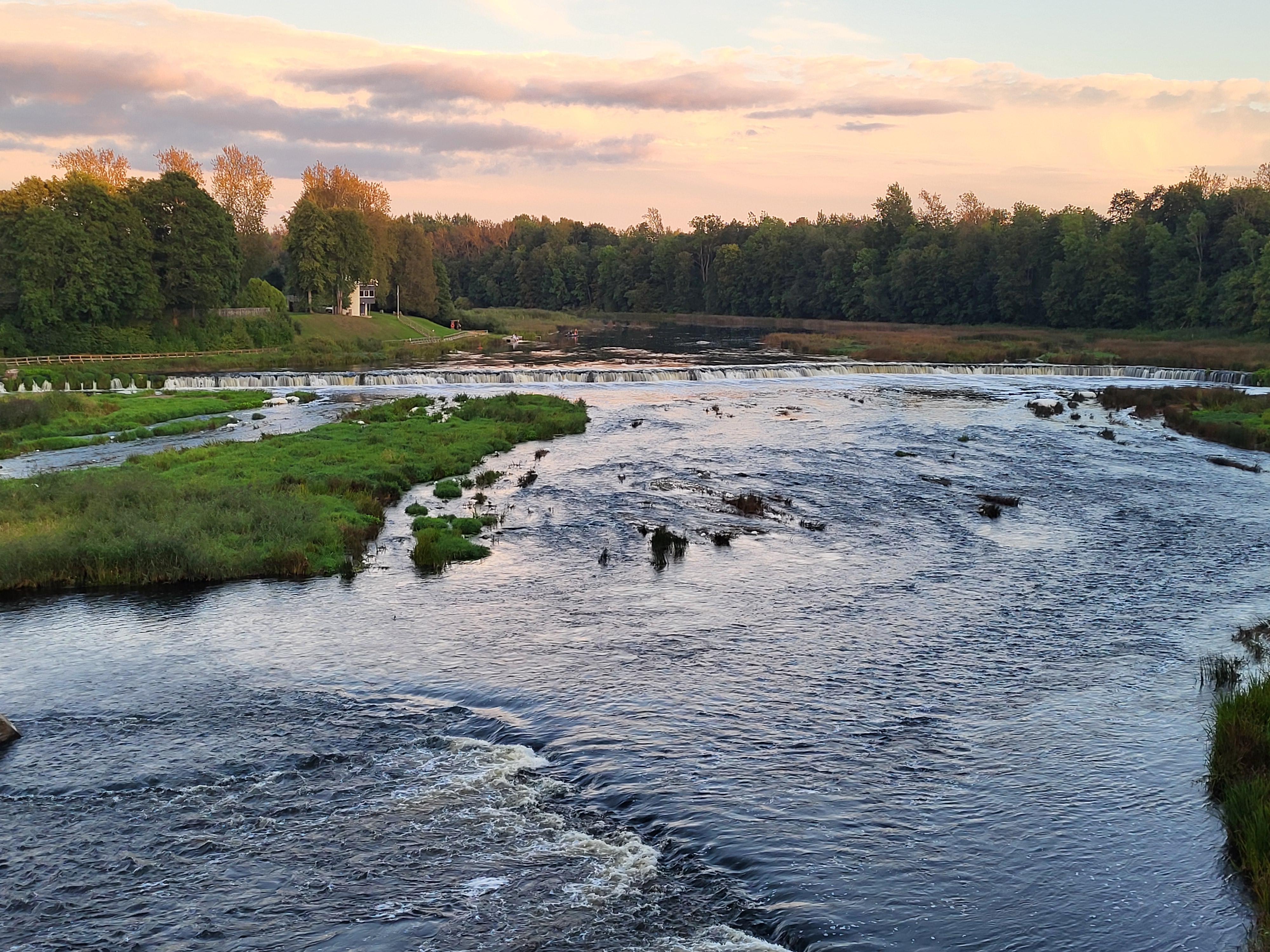 Så anlände vi så småningom till Kuldiga, resans mål. Efter incheckning på hotell Jekaba Seta, ett litet lagom stort hotell med trevlig personal, och intagande av en lagom liten kvällsbuffé, var vi många som tog en promenad genom den lilla staden till det berömda vattenfallet, som är 249 meter brett – Europas bredaste. Dess höjd är nog å andra sidan Europas lägsta.