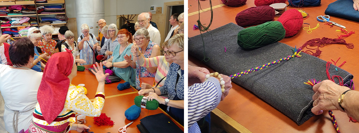 Där lärde vi oss att göra snoddar av garn på traditionellt sätt.