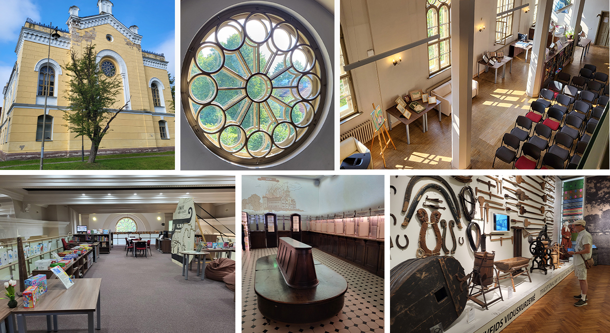 Vi gick till biblioteket, där vi pratade med barnbibliotekarien som berättade att de skulle fira Pippi Långstrumps 80-årsdag framåt hösten. Biblioteket hade tidigare varit synagoga.