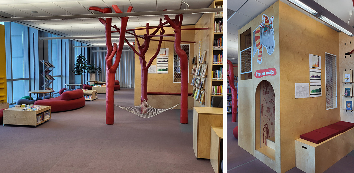 På biblioteket finns också en barnavdelning som vi förstod kan vara ganska välbesökt, även om inga barn fanns på plats när vi var där. Där fanns bland annat ”Pippi Långstrumps hus”.